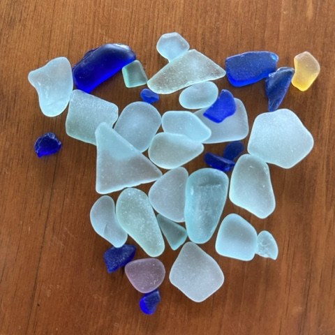 Gift from the Sea At the water's edge, I wait lost in the soul of a young girl who finds quiet joy in the humble treasure that washes in, a gift of broken glass tumbled smooth from the sea. Treasure is hard to find today Sea glass collecting is now declared a national sport at Lake Huron Earnestly they seek the pretty glass to adorn their home For me, home is in the gift of the sea that smooths the brokenness in me. I listen quietly to the whisper of the sea, reminisce of early morning walks with Dad along the watered line The smell of fishing boats that lure the sea-gulls cry anchor my heart’s perfumed memory that lingers still. One treasure holds my hand, the other washes up at my feet that sink into the wet sand the third, buried deep in the mystery of the sea The sea's roar, a paradox gift that instills a calm in me. Three-in-one treasure freely offered at the line that separates the gathering of the sea from the land on which I stand A fathers hand, broken glass, and the mystery of the sea lulls my soul's chaos into a deep lullaby peace. A Kairos Genesis moment, in communion with the three My tears both weep and worship the treasured gifts sacrificed at the water's altar. The-one-who-gathered-the-sea waits patiently for me to see that the treasured broken glass smoothed anew is a holy reminder of the broken one who placed his treasured one deep within the heart of me that washes my hidden jagged brokenness His gift from the sea... Home to me.